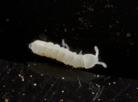 The grey brown Pariosotoma notabilis (1.4mm) is found deeper underground.